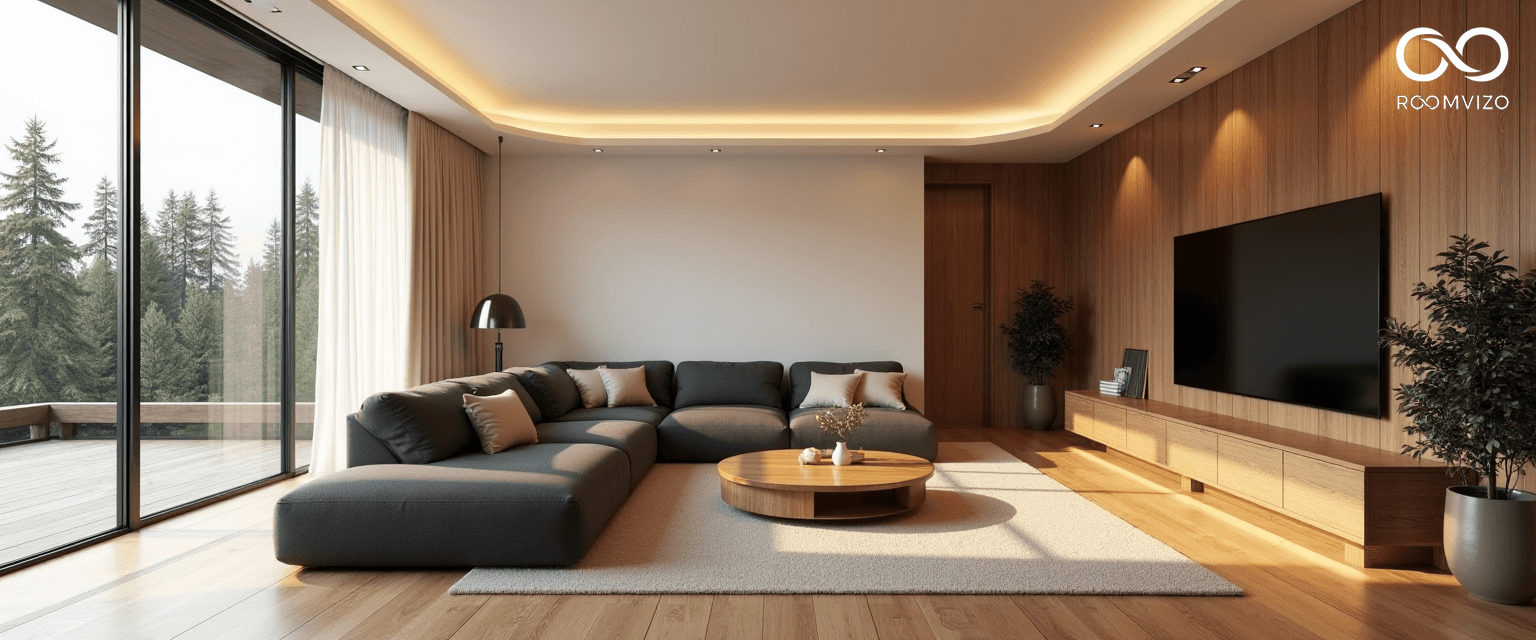 Natural light is celebrated through floor-to-ceiling windows softened with sheer linen drapery, allowing the sun to animate every surface throughout the day. Evening ambiance is curated using layered lighting: minimalist pendant fixtures, sculptural floor lamps, and wall sconces with matte finishes. Warm-tone LEDs are strategically placed to ensure the interiors remain cozy and comforting as the daylight fades.