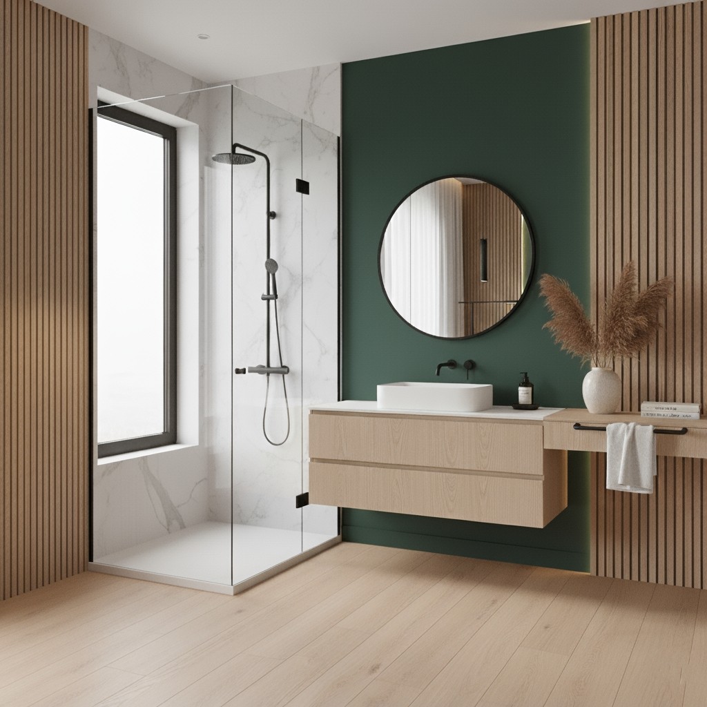 The Urban Oasis palette is built on a foundation of refined neutrals and deep, grounding tones. The primary colors are a rich forest green and warm, natural wood tones that provide a sense of organic calm. These are complemented by a variety of grays, from charcoal to dove gray, and soft creams. The result is a palette that feels both luxurious and balanced, evoking the serenity of nature within a modern setting.